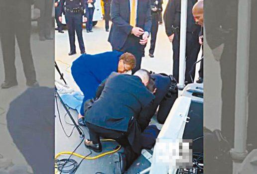 洛杉磯市長巴斯協助一名在新聞發布會上昏倒的新聞攝影師。KNX News