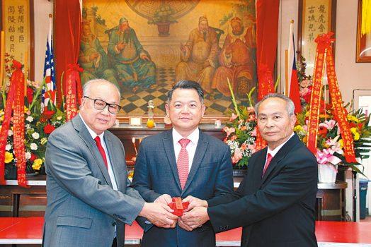 由劉、關、張、趙四姓宗親組成的羅省龍岡親義公所,10日中午舉行2024年新任職員就職典禮。在駐洛杉磯台北經文處處長紀欽耀主持監交,關華正從卸任主席劉文新手中接過印信,成為新一屆主席。關華正表示,龍岡公所四姓一家,他任內將致力與大家合作,一起服務宗親及僑社。