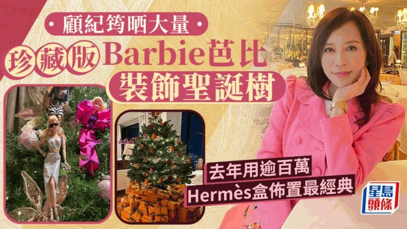 人稱「顧老闆」的顧紀筠是Hermès的愛好者,去年她在IG曾貼出站在逾2米高的聖誕樹旁打卡,最特別之處,是聖誕樹上掛滿Hermès小盒,而地上更有逾百個Hermès大大小小紙盒,成為網上佳話。今年電影《Barbie芭比》在香港上映,大受歡迎,顧紀筠亦曾趕上「Barbie熱潮」穿上一身粉紅造型:「我也學着穿那個死亡芭比粉!」而顧紀筠今年裝飾聖誕樹,就以Barbie芭比做主題。