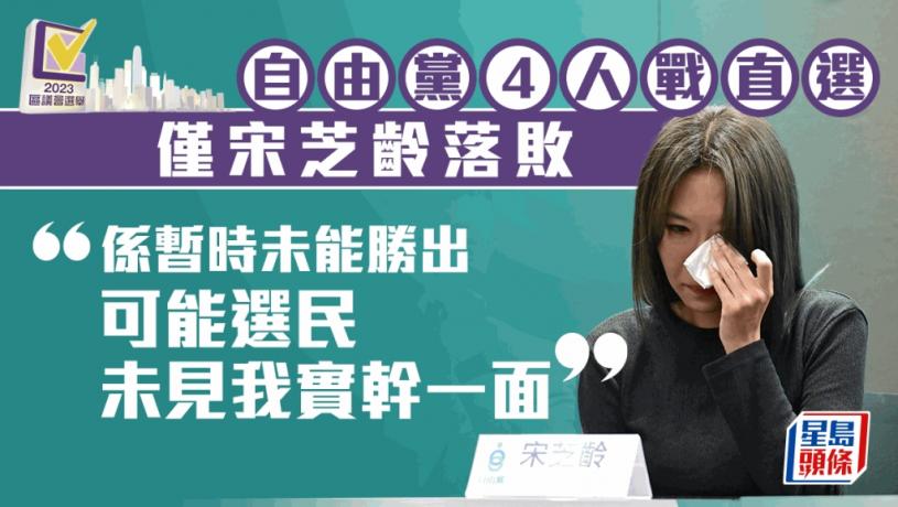 區議會選舉塵埃落定,自由黨派出4人競逐直選議席,一度成為熱門的灣仔區宋芝齡敗選,其餘3人勝出。該黨另在地區委員會界別派出3人出選,2人當選。自由黨今日(11日)下午舉行記者會總結選舉結果,成為傳媒焦點的宋芝齡一度落淚,硬咽地說 : 「自己唔係落敗,只係暫時未能勝出」,強調未來會繼續在社區服務,爭取將「空中票」變成實體票。