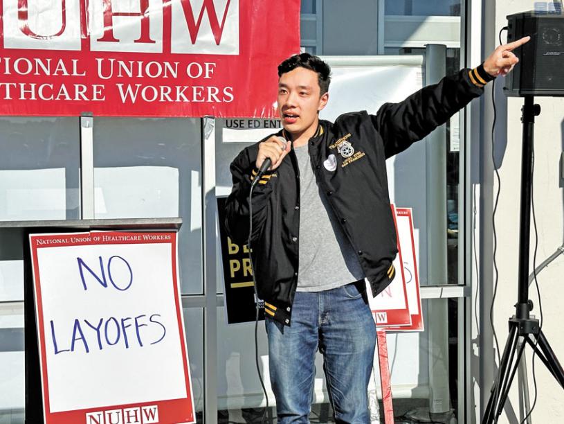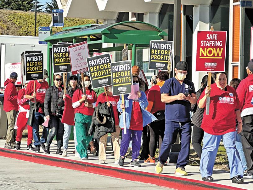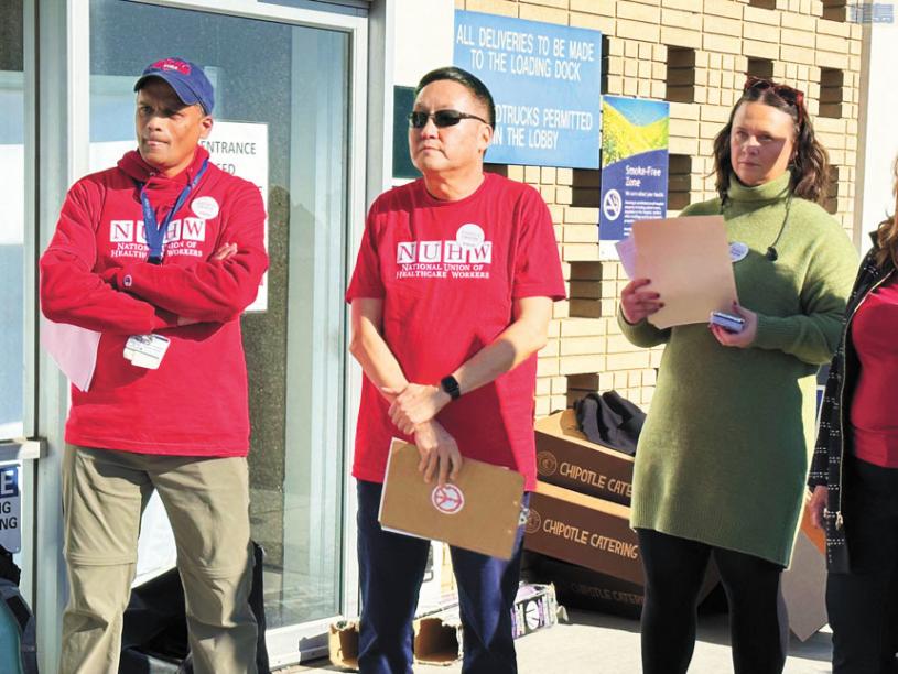 周二(12日)上午11時,由全國醫護人員聯盟(NUHW)組織大批來自帝利市(Daly City)薩頓醫院(Seton Medical Center)的工人及醫護人員來到醫院前舉行抗議活動,表達對醫院不斷削減病人服務和護理人員的醫療福利的不滿。