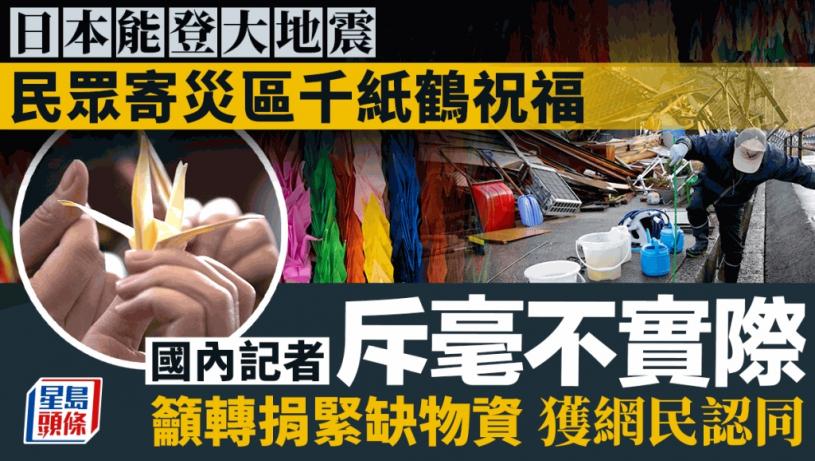 1月3日,日本《產經新聞》記者那須優子一條關於千紙鶴的網上發文稱,不少日本人花錢購買千紙鶴,隨後佔用寶貴的運輸資源把這些對救災毫無用處的手工藝品送往災區。對於這種現象,她表示「花同樣的錢,佔用同樣的重量,我們明明可以向災區捐贈茶包和食物。」她還轉發了一個當地列出的緊缺物資清單,希望大家能根據這些信息郵寄救災物資。