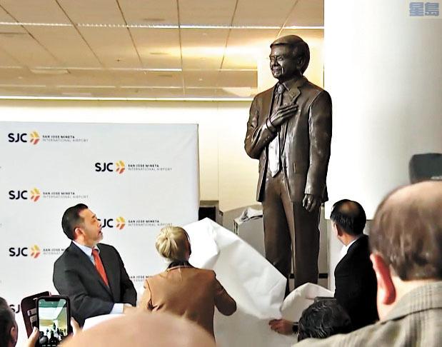 聖荷西政府為已故聖荷西市長、聯邦交通部長峰田(Norman Mineta)設立的雕像,周四(25日)在以峰田命名的聖荷西國際機場揭幕,以紀念這位擔任內閣要職的亞裔第一人。