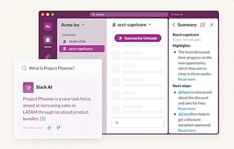 雲端即時通訊軟件公司Slack去年測試一款生成式人工智能(generative AI)工具集,大部份功能有助用戶在使用該工作通訊平台時更為簡便高效。這套工具集如今正式推出。