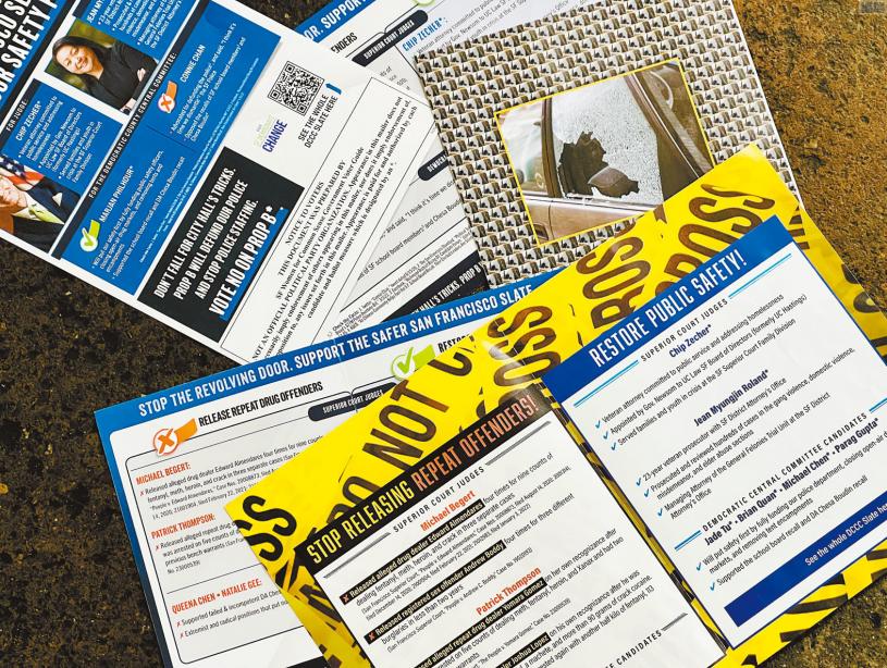 多名參選人鍾曉雲、阮忠誠、李銘富、陳慧君、朱凱勤和陳詩敏稱,受到的攻擊主要集中在公共安全議題上。勞工家庭參選團提供了「三藩市民主黨變革」(San Francisco Democrats for Change)聯盟的宣傳資料,陳詩敏、陳慧君、朱凱勤等被指罔顧社會治安和公共安全,宣傳單上寫著「停止釋放累犯」,並稱幾位候選人為「極端份子」和「激進份子」,「將公共安全至於危險之中。」