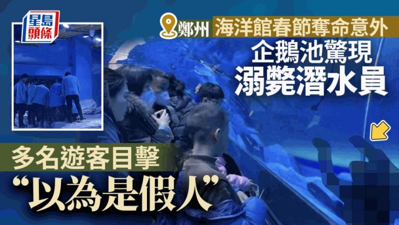 近日,內地有網民在社交平台發文稱,在春節假日期間,鄭州海昌海洋館的一名潛水員在企鵝池工作時溺亡。鄭州海昌海洋館的工作人員昨(21)日下午證實事件。