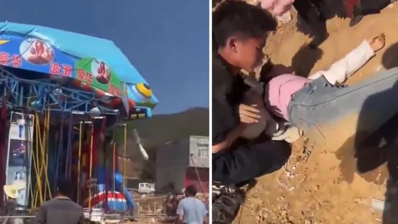 廣西百色隆林縣德峨鎮一個遊樂場20日發生事故。網上視頻顯示,現場一座充氣城堡側翻,地上躺著一名女傷者。視頻拍攝者稱:「全部掉下來了,好多孩子都受傷了,大人也受傷了,這裡躺了一個大人不會動了。」