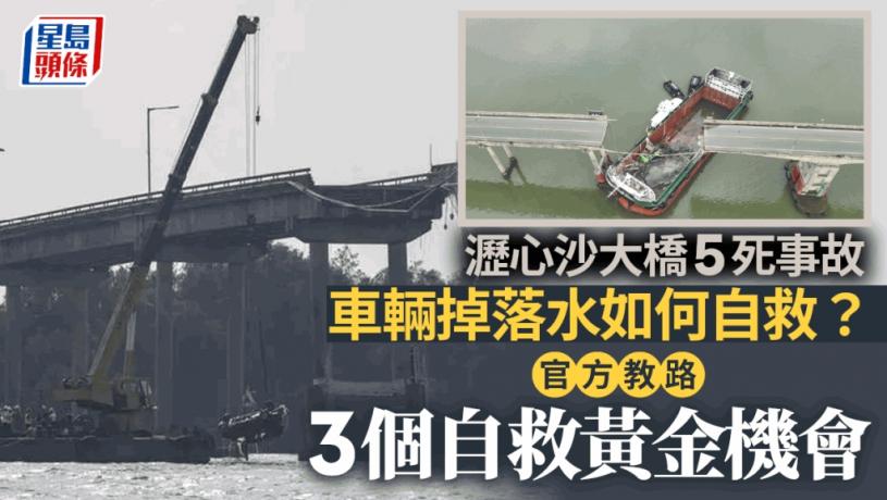 周四(22日)清晨,佛山南沙瀝心沙大橋橋面因貨櫃船撞墩致斷裂。多部原在橋面的車輛墮橋,其中2輛小貨車更掉落水。