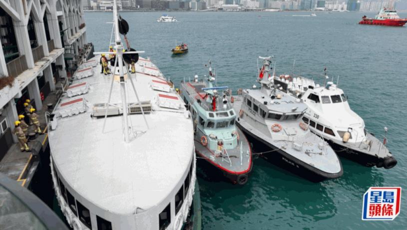 天星小輪煙囪噴火冒煙,消防到場調查。梁國峰攝