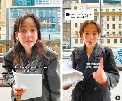 紐約Z世代高學歷網紅桑托斯(Lohanny Santos),1月份把自己拿著一叠履歷即場求職卻被拒、淚灑街頭的經歷拍成影片,上載至社交媒體後獲得2500萬次瀏覽量。她日前向網友報喜,稱獲僱用為協助製作TikTok短片的兼職僱員。桑托斯否認網民指她是跟商業機構「做媒」炒作的評論,強調自己出身寒微,與受僱行業毫無關聯。