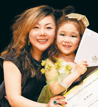 潘潔和潘美貝爾母女倆收獲成功的喜悅。 潘潔供圖