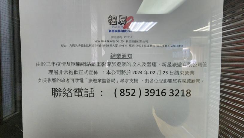 相關報道:新星旅遊結業|旅監局指過百市民求助 涉團費36萬元 年三十收結業通知
