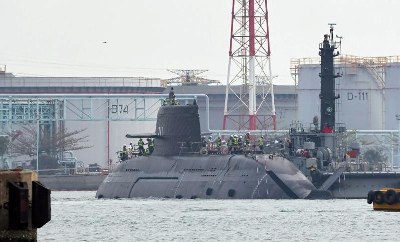 潛艇在轉移期間下水,半截艇身浮在水面,全貌大致曝光,艦艏及船舷側裝有聲納陣列及魚雷管等。而被視為軍事機密的螺旋漿仍以帆布包裹。