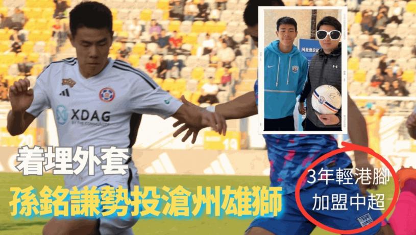 雖然中超球隊滄州雄獅(前為石家庄永昌)未正式官宣,但孫銘謙穿上了該隊外套的相片已流出,相信該位年輕鋒將加盟滄州雄獅十拿九穩。此外,本來效力中甲廣西平果哈嘹的另1香港鋒將安永佳,亦證實加盟中超升班馬深圳新鵬城,新球季將穿上19號球衣作戰。