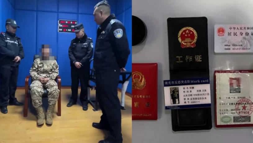 四川一名15歲少男長期沉迷於觀看「軍事短片」,遂上網購買解放軍武警部隊作戰服,製作「特種部隊」工作證,一圓軍迷夢。不僅如此,他還在朋友圈裡時常發布「軍人」照,被不少網友點讚,讓他「自信心」爆棚,竟在現實生活中假扮「武警上尉」跑到地方武裝部替自己辦理「工作」調動,被識破交由警方處置。