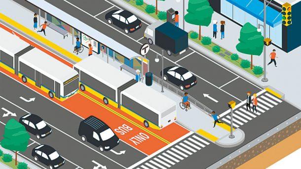 該項目將為所有街道使用者定義空間,使交通更加順暢,減少衝突和混亂。除更高效的公交走廊外,多式聯運的重新設計還將創造更安全的行人條件,例如更寬的人行道和更多的人行橫道,增加樹冠,並安裝新的設施,例如更好的街道照明、長凳、自行車停車場和公共藝術。