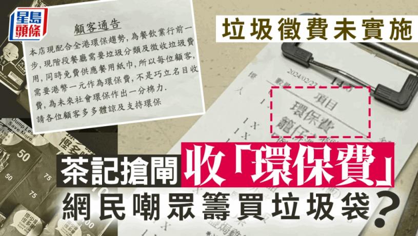 垃圾徵費延後至今年8月1日實施,不過有餐廳懷疑提前將成本轉嫁消費者,竟然加收「環保費」,聲稱用作垃圾分類及徵費之用。網民紛紛批評「搶錢」,而餐廳則指並非巧立明目收費,而是要為環保出一分綿力。