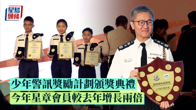 少年警訊今晨(2日)舉辦2023年的獎勵計劃頒獎典禮,適逢少年警訊成立50周年和耆樂警訊成立10周年的日子,以「長幼傳承,滅罪伙伴」為口號,表揚那些積極參與各種少訊活動的會員,今年獲得金、銀、銅星章的少訊會員共有1094人,比去年增長了兩倍。