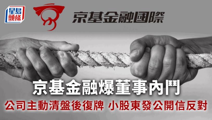 從事證券、保險經紀等金融服務業務的京基金融國際(1468)近期爆發股東及董事內鬥,在停牌約一個月後,近日公司主動向開曼法院提交清盤呈請,進行債務重組,並決定明天(3月4日)復牌。有小股東發公開信,反對此時復牌,令「部分不明真相的小股東誤以為上市公司已解決所有疑慮趁平撈貨」,要求京基需對現金迅速流失作出查詢,待細節澄清後後才正式復牌。