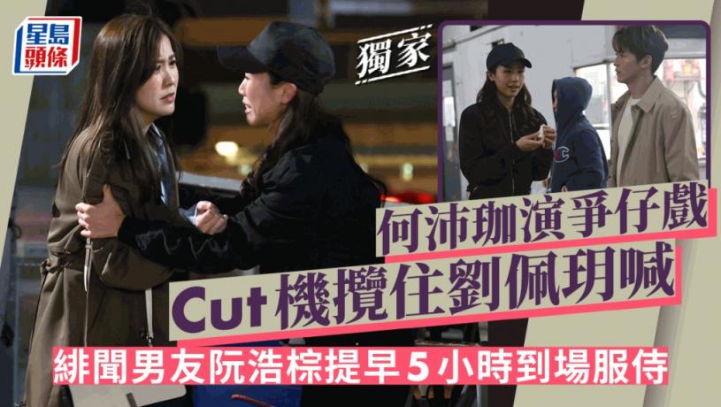 當晚劉佩玥及何沛珈於火炭一所工廠大廈拍外景,劇情講述這對好姊妹因為阮浩棕嘅感情瓜葛發生爭執,兩人先口角繼而隻揪。雖然頭段未有阮浩棕戲份,但他以睇位為理由,提前5小時到場照顧緋聞女友Roxanne,遞水、遞紙巾外,又會幫手望吓個pad墊得好唔好,擔心女友拍動作戲會受傷,超細心。