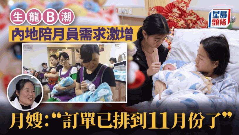 「龍」對中國人有著特別的寓意,不少人都想在龍年生一個「龍B」,新生龍仔龍女湧現,也讓陪月員(內地稱「月嫂」)變得搶手起來。