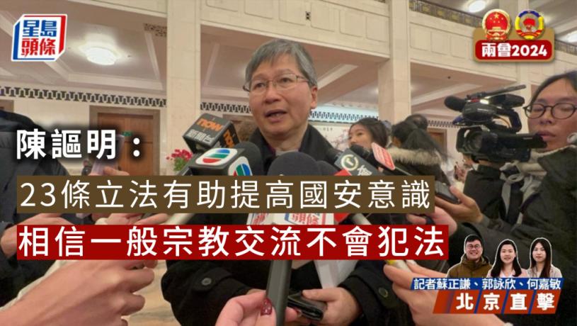 特區政府正就《基本法》23條立法,在北京出席政協會議的香港聖公會教省主教長陳謳明表示,就有立法提出意見,希望當局能寫清楚法例條文,相信一般宗教活動、交流不會觸犯法例。