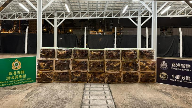 行動中,人員在岸邊檢獲共21箱約417公斤懷疑走私龍蝦及一輛七人車,市值共約32萬元。案件正由海關人員繼續跟進調查。