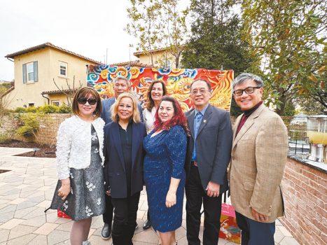 左1 前核桃市長蘇王秀蘭,左2 羅蘭崗學區教委Agne Gonzalez,中間國會議員琳達·桑切斯, 右2核桃市議員伍立倫,右1江俊輝前加州主計長,後面右邊核桃副市長Linda Freedman, 左邊核桃市議員Ritchie Cajulis。 蘇王秀蘭提供