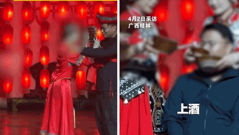 網傳視頻顯示,有網友在廣西桂林陽朔某景區觀看民俗表演,被拉上舞台互動「鬧洞房」,遇強制收費168元(人民幣,下同),相關視頻在網上引發關注。話題「旅遊時被拖進洞房3分鐘收費168」衝上熱搜,有網友評論稱,「被拖上舞台配合表演,為啥還要收錢?」央視新聞報道指,當地有關部門已展開調查。