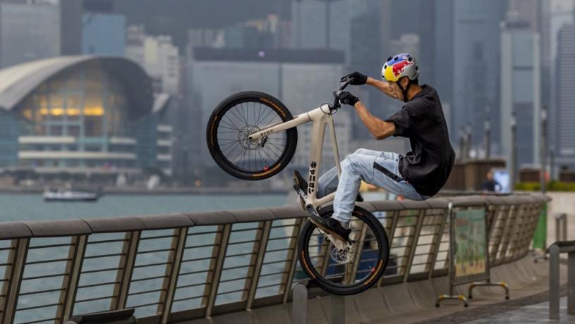 日本攀爬車(Trails Bike)明星西窪友海(Tomomi Nishikubo) 3 月中訪港,為 Red Bull 拍攝新視頻,在中環鬧市大玩各款花式技巧。