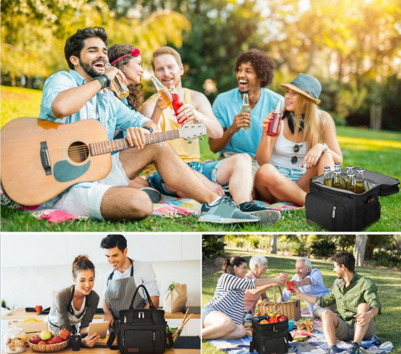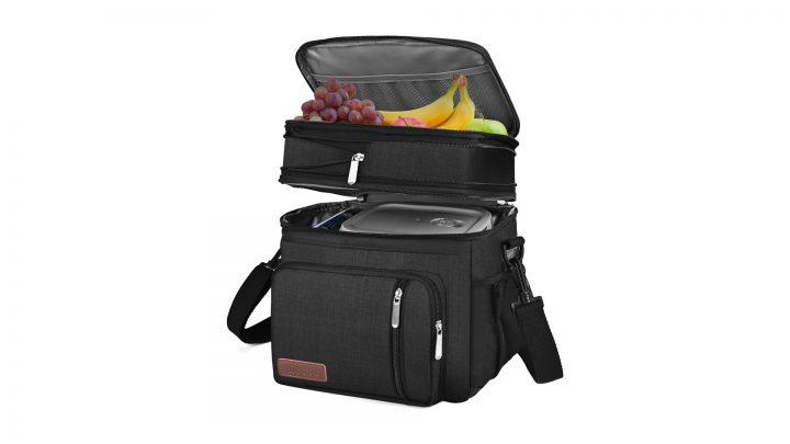 MIYCOO雙層午餐袋,適合各種場合。無論是帶著午餐去辦公室,還是攜帶冰鎮啤酒享受沙灘時光,或是週末帶著家人野餐,都是極佳的選擇。它的尺寸為 9.5英吋 x 8.0英吋 x 10.5英吋,展開後為 11英吋 x 8.0英吋 x 10.5英吋,大容量設計讓你可以輕鬆裝下啤酒、零食、飲料及午餐盒等各種食物和飲料。午餐袋的上下兩層設計使得食物分類存放,防止擠壓和堆積,保持食物的完好無損。內部採用加厚PEVA材質內襯,無縫一體化設計,有效防止漏水,同時具備優良的保溫和保冷性能,即便放置冰塊也無壓力,能長時間保持食物和飲料的溫度和新鮮度。它內襯光滑,易於清洗,簡單擦拭即可,非常適合日常使用。其耐用性和實用設計,加上黑色的外觀,適合男女老少使用。