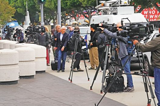 大批媒體聚集在洛杉磯聯邦法院外。美聯社