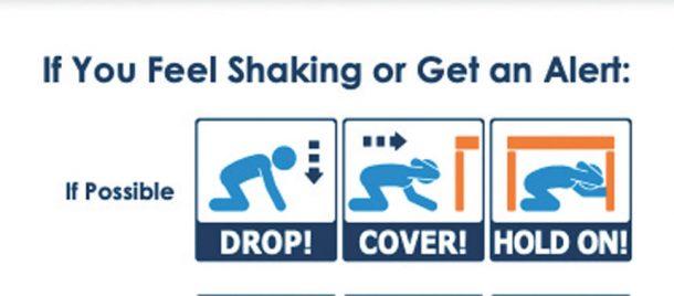 應對地震的方法:趴下、護住和抓牢。網站截圖