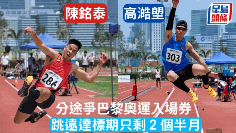 現距離巴黎奧運跳遠達標日還有2個半月,兩位「跳遠王子」高澔塱及陳銘泰今日在灣仔運動場舉行的香港田徑系列賽三,分別在超風速下以7米79及7米63包辦首2名後,期望一齊取得巴奧入場券,關鍵一仗是下月4-5日將軍澳的香港田徑錦標賽。