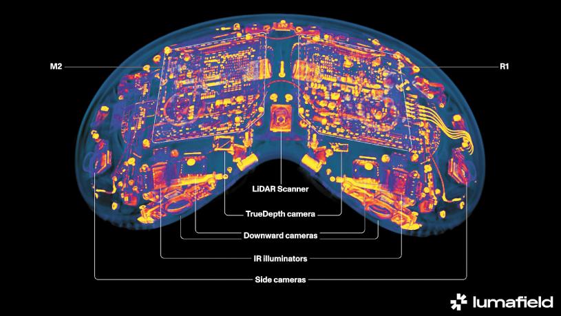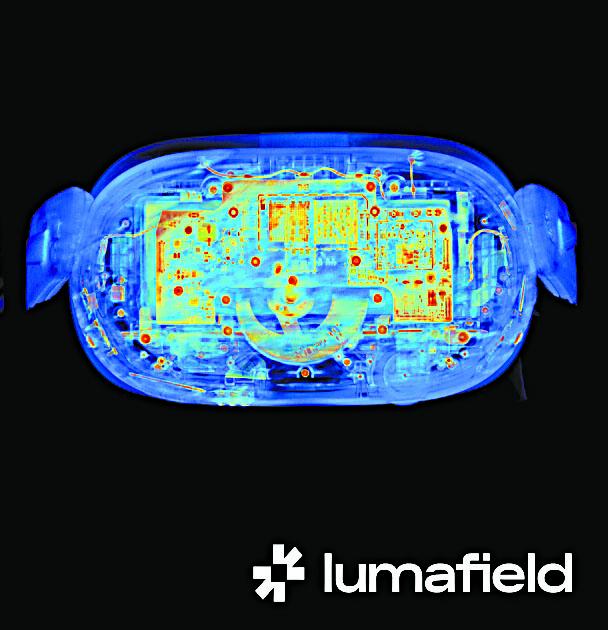 工業CT掃描儀公司Lumafield發布圖像視頻,以新的非破壞性拆解方法,展示出蘋果混合實鏡(MR)Vision Pro眼罩內部的驚人細節,包括攝影機、感測器和其他技術的精密工程,還與Meta的同類型眼罩 Quest 3和Meta Quest Pro展開對比。
