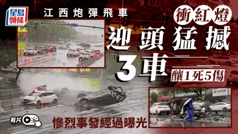 而網上流出影片見,肇事私家車當時高衝直駛,穿過一十字路口,直撞等交通燈前等候的三輛車輛,肇事車輛猶如駛到跳台,衝上半空。