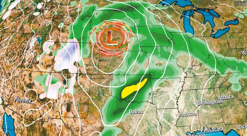 風暴預測中心表示,從德州北部到堪薩斯州南部,15日將出現3級嚴重雷暴,預料影響區內數百萬人,下周初的強烈雷雨也可能引發山洪。本報訊