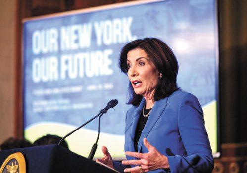 據《紐約時報》報道,來自水牛城的中間派民主黨州長胡楚,再次與州議會陷入預算纏鬥。她採取像之前許多州長一樣的策略,試圖以包羅萬有的手段,在預算討論中引入其他非財政優先事項,例如建立綜合住房策略及市長公校控制權等。