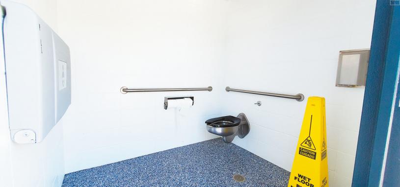 然而,在這間50平方英尺的狹小公廁里,除了一個金屬馬桶、兩根金屬欄桿和一個可容納三卷標準尺寸廁紙的裝置外,幾乎看不到其他東西。
