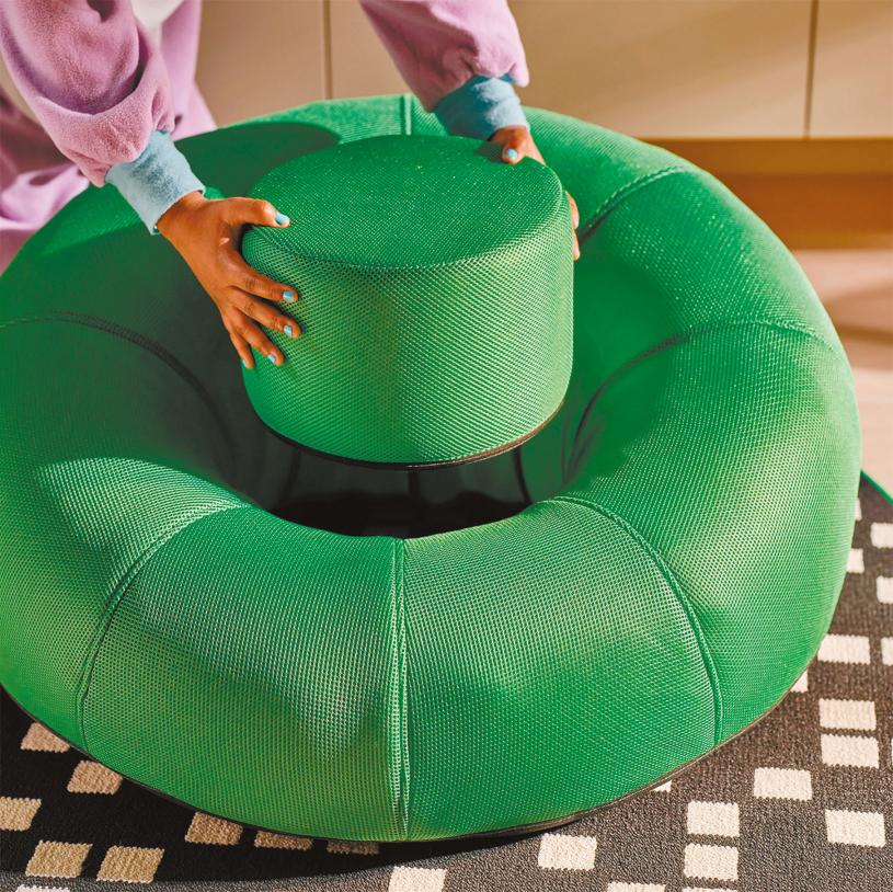 座椅是主要焦點,其中有一款靠背椅可以展開成休閒姿勢,一款搖椅設計成能隨著身體的移動擺動,加上一款配有相配腳凳的充氣圓環椅。