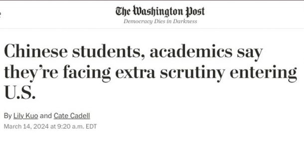 《華盛頓郵報》3月份報道了入境美國遭盤查的6名中國留學生和2名訪問學者。官網截圖