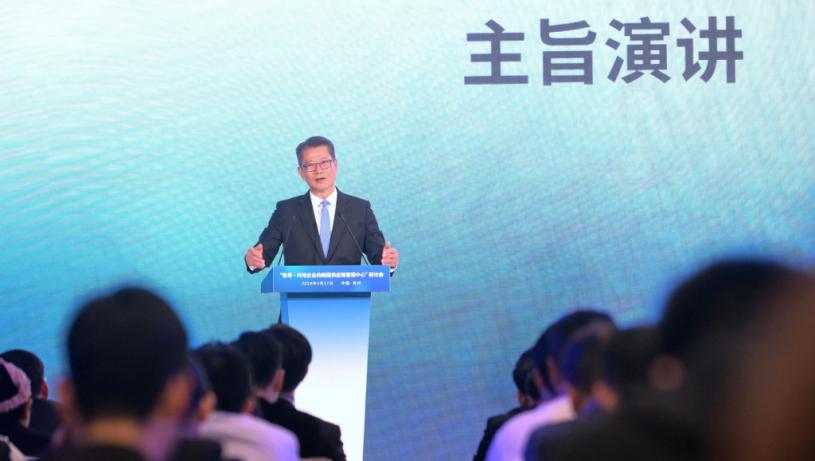 陳茂波指,在國家的堅實支持下,香港擁有 「一國兩制」的制度優勢、融通國際的資金優勢、多元包容的人才優勢、連繫便捷的區位優勢,與國際銜接的專業服務優勢,以及安全穩定、豐富多元的大都會生活優勢。特區政府歡迎內地企業來港設立管理離岸貿易的區域總部,並會積極為他們提供一站式服務,包括供應鏈管理、貿易融資、諮詢,以及人才和企業培訓等。