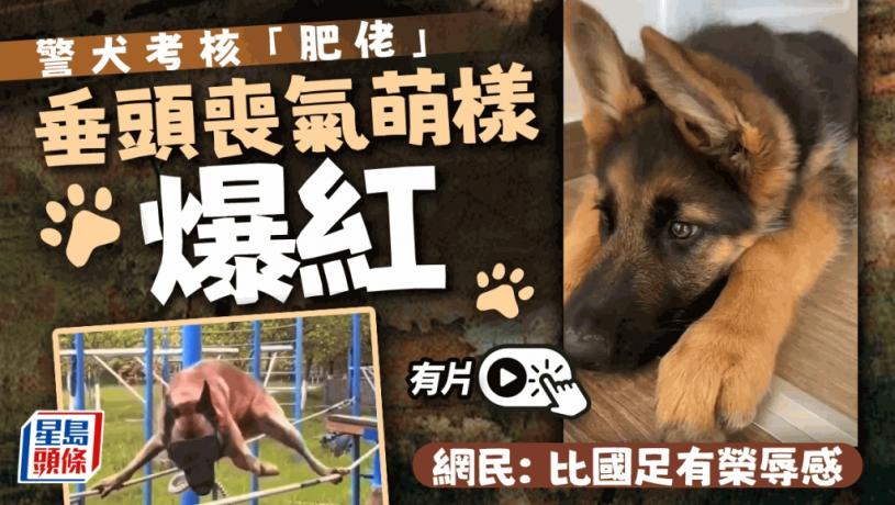犬隻憑其靈敏嗅覺和絕對忠誠,是警隊執法的最佳拍檔。昨日一段警犬考試「肥佬」後的委屈短片,在網絡甫上架,即極速衝上熱搜榜前列,一度成為第一名。