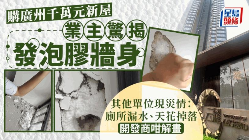 廣州近日有業主向媒體投訴,花千萬人民幣購入的新房,入住才幾個月就發現大量質量問題。除了廁所外有明顯滲水,廁所附近的牆體發霉,有出入大堂的天花板整體掉落。而最令他們擔心的是,不少業主發現房內牆體竟是用大塊的發泡膠填充,「這樣不會有安全問題嗎?」