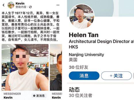 讀者劉小姐表示,她將某社交平台上的資料設置為「單身」,所以該平台時常會彈出一些徵友廣告。幾天前,她刷手機時看到一則徵友廣告,一位男士名叫Kevin,眉清目秀,條件尚可,想要尋求人生伴侶。這位男士在廣告內自我介紹稱,他已經離異,女兒在英國讀書,還著重強調了他有房產,女兒讀書也不用他負擔。