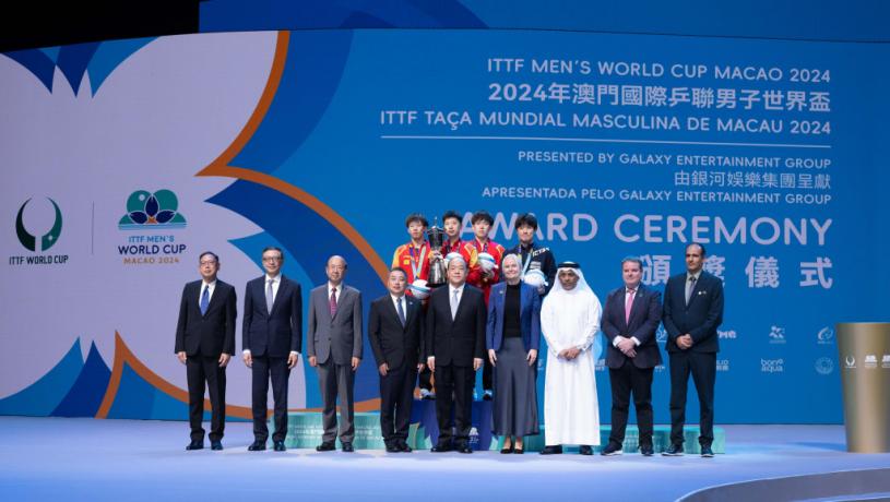 由國際乒乓球聯合會(ITTF)授權,體育局、銀河娛樂集團及世界乒乓球管理集團有限公司主辦、澳門乒乓總會協辦的「2024 年澳門國際乒聯男子及女子世界盃 ─ 由銀河娛樂集團呈獻」周日在銀河綜藝館進行男、女單決賽,全場座無虛席,見證王者誕生。今屆男、女子單打均要打足七局分勝負,結果國家隊的孫穎莎和馬龍分別反勝隊友王曼昱和林高遠,封王稱后!