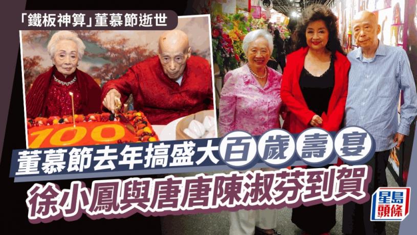 今日(22日)有報道指,從80年代到90年代紅極一時的命理大師、被譽為「鐵板神算」的香港玄學界名人董慕節離世,享壽101歲。董慕節去年百歲壽辰時,其外孫張存華都有在社交網上載照片,現場看到有很多賓客,當中包括甚少露面的徐小鳳。