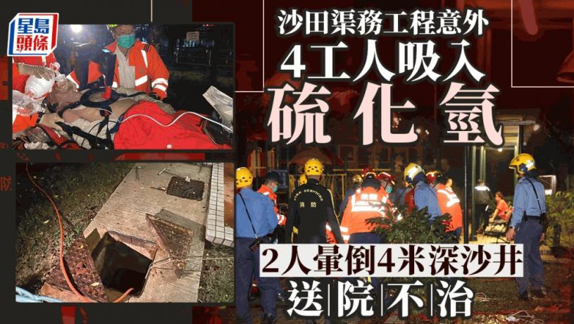 沙田發生奪命業意外。昨日(22日)晚上近午夜零時,沙田源禾路16號一休憩公園內正進行渠程工程,有2名工人於沙井內暈倒,陷入昏迷;另外2名工人則在井口外受傷。消防員接報後趕往現場,在沙井內救出兩名暈倒的工人,他們昏迷由救護員送住醫院搶救,惟最終不治。另外在井口外的2名工人清醒,亦由救護車送往醫院治理。警方正調查事件原因。