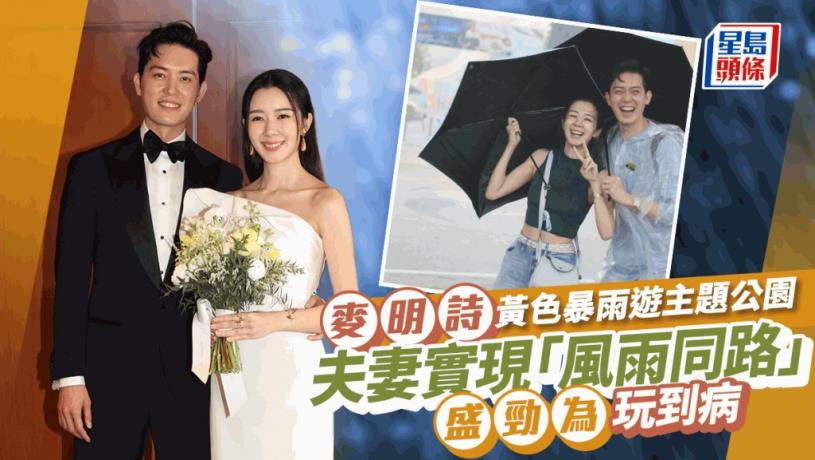 從麥明詩分享的片段所見,主題公園門外橫風橫雨,雖然大家都撐傘,但似乎作用不大,在場不少小朋友攬住大人,尖叫聲不絕,有如災難片現場。身穿小背心,揹起約值10萬元的Hermès Mini Lindy手袋的麥明詩,與穿上雨褸的盛勁為雖受風吹雨打,但兩人依然笑容滿面,一同面對困難,果然勁甜蜜。不過麥明詩就為小朋友用表情失落的熊貓Emoji遮面,似乎真的很失望,盛勁為就搞笑地以經典廣告台詞留言:「唔通連個天都唔鍾意我?」有網民就留言指正:「舅母係配外甥呀」,麥明詩則笑回:「唔識呀」,另有人留言:「你仲要呢個袋雨天出街兼配牛仔褲!勇!」麥明詩亦自嘲:「係戇居,冇經大腦」,之後盛勁為更在IG Story出Po指:「最後病埋」。