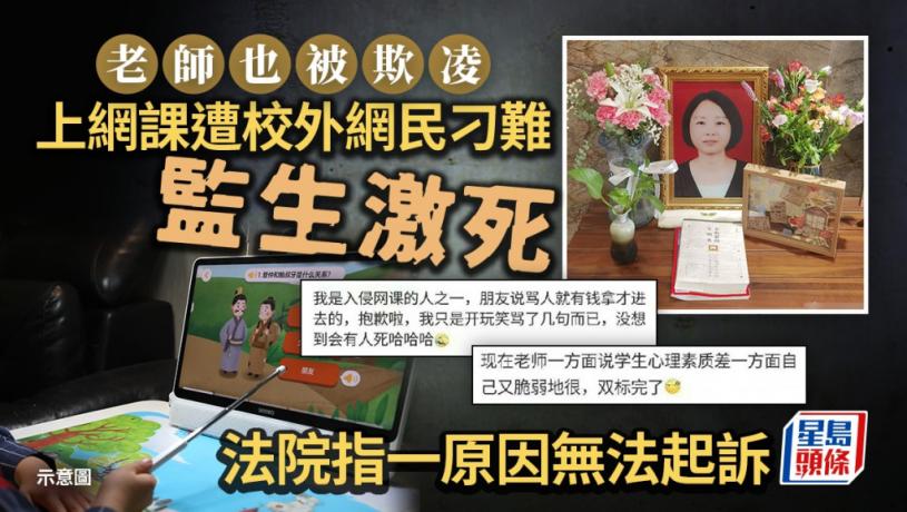 未成年人犯罪近日成為內地熱門話題。2022年河南有中學教師上網課時,被學生邀請外間網民加入,持續對教師「網課爆破」,即惡意刁難辱罵干擾,教師之後疑不堪刺激在家「猝死」。事件雖被警方介入調查,但官方至今未公佈處理方式,死者家屬稱檢方指事涉未成年人及網絡空間「無法起訴」。死者女兒不滿,當年邀請網民惡意對母親「網課爆破」的學生,至今仍未到亡母墳前道歉。